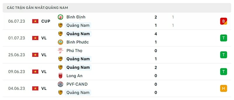 Trong 5 trận gần nhất tại giải HNQG, Quảng Nam bất bại với 4 chiến thắng và 1 kết quả hòa. Tính rộng ra, đội bóng này thắng 6, hòa 3 và chỉ thua 1 trong 10 trận đã qua. Quảng Nam hiện đang dẫn đầu giải đấu với 3 điểm nhiều hơn PVF-CAND.