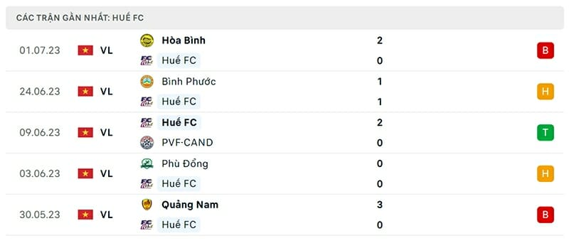 Trong khi đó, sau trận thắng bất ngờ trước PVF-CAND, Huế đã không biết đến mùi chiến thắng trong 2 vòng đấu gần nhất. Họ hòa Bình Phước 1-1 trước khi để thua 0-2 trước Hòa Bình ở vòng trước. Huế có cho mình 12 điểm sau 10 trận và đang xếp thứ 7 trên BXH. Thành tích của đội bóng này là 3 thắng, 3 hòa và 4 thua.