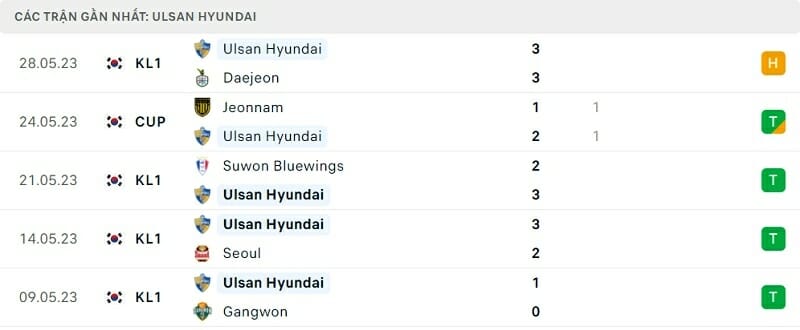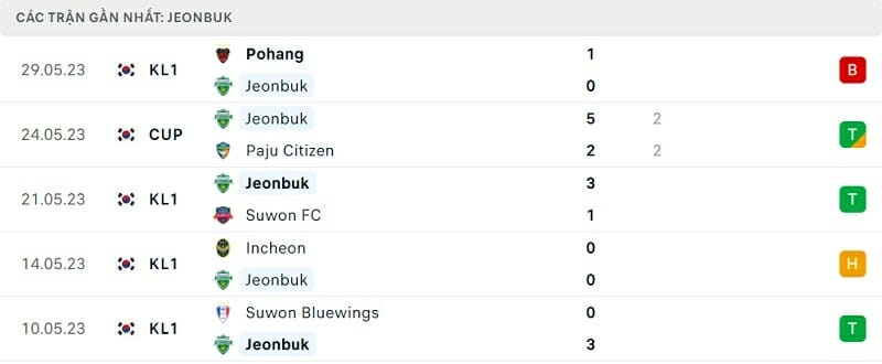 Phong độ thi đấu Jeonbuk vs Ulsan