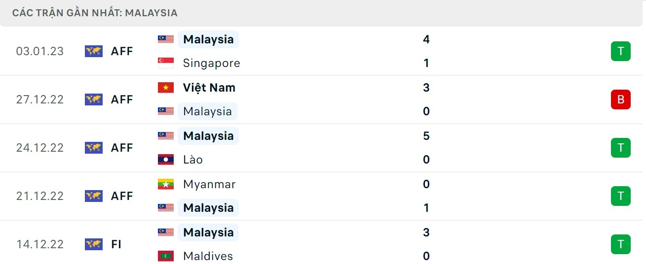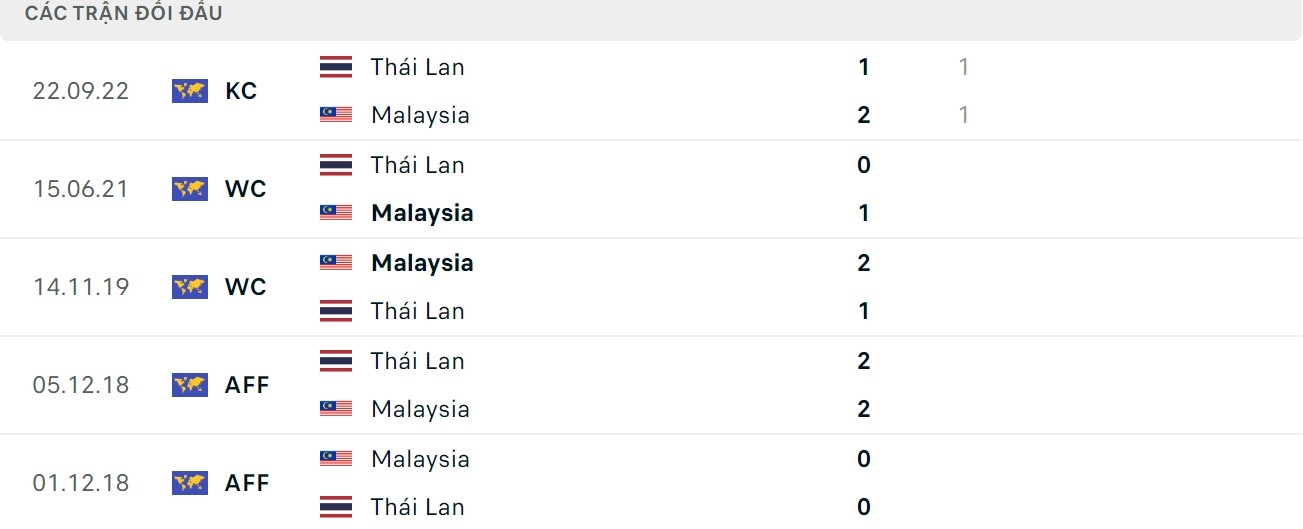 Thành tích đối đầu Malaysia vs Thái Lan:
