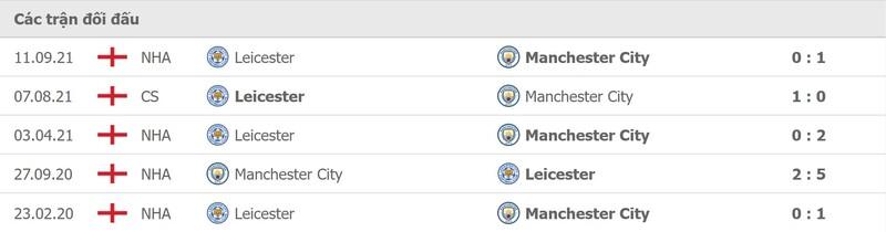 Thành tích đối đầu Man City vs Leicester City: