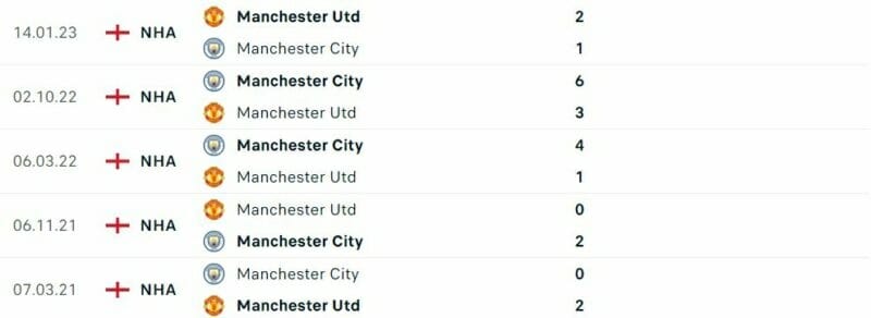 Thành tích đối đầu Man City vs MU