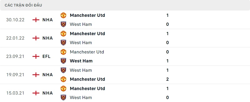 Thành tích đối đầu Man United vs West Ham