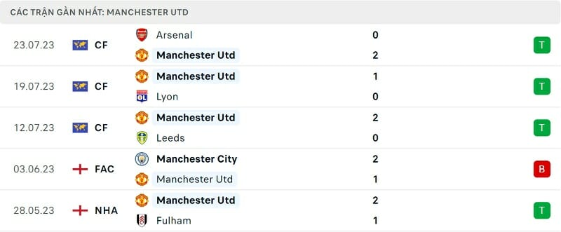 Như một thói quen, Man Utd tiếp tục đạt kết quả tốt khi đấu giao hữu. Họ đã chơi 3 trận gặp Leeds United, Lyon và Arsenal. Rốt cuộc, thầy trò HLV Erik ten Hag giành 3 chiến thắng, ghi 5 bàn và không thủng lưới lần nào.