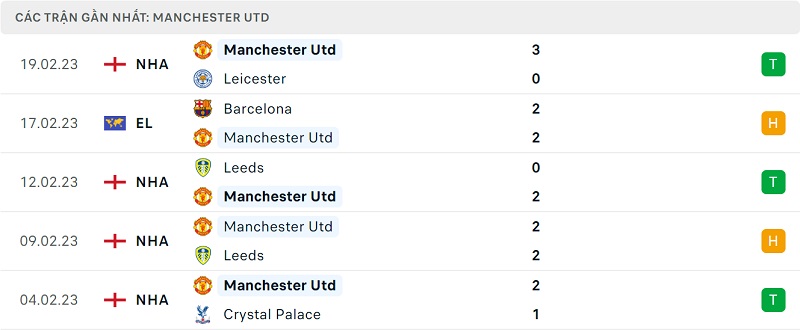 Cả Manchester United và Barcelona đều chạy đà cho màn thư hùng sắp tới bằng một chiến thắng tại giải quốc nội. Quỷ đỏ hạ đẹp Leicester City 3-0 để bám đuổi Manchester City và Arsenal trong cuộc đua vô địch Ngoại hạng Anh, còn Gã khổng lồ xứ Catalan đánh bại Cadiz 2-0, qua đó xây chắc ngôi vị số 1 trên BXH La Liga. Nếu không tính trận lượt đi vòng play-off Europa League thì thầy trò Erik ten Hag đã thắng 6/7 trận gần đây, còn đoàn quân của Xavi Hernandez cũng toàn thắng 9 trận.