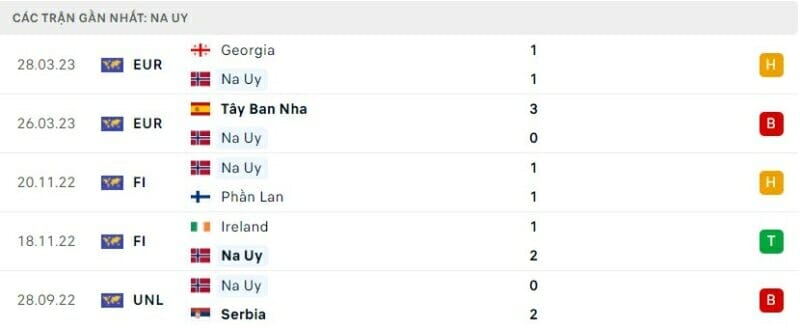 Phong độ 2 đội Na Uy vs Scotland