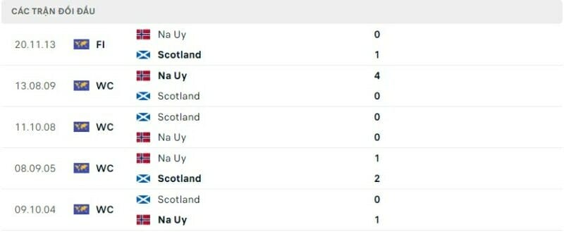 Đối đầu Na Uy vs Scotland
