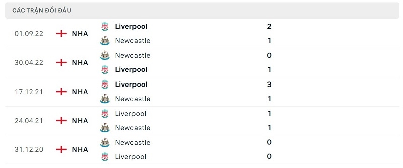 Thành tích đối đầu Newcastle vs Liverpool: