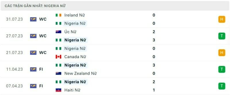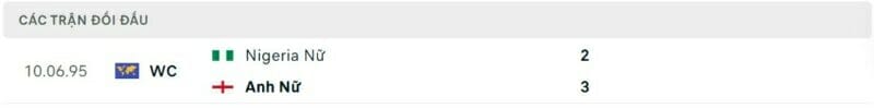 Thành tích đối đầu nữ Anh vs nữ Nigeria:
