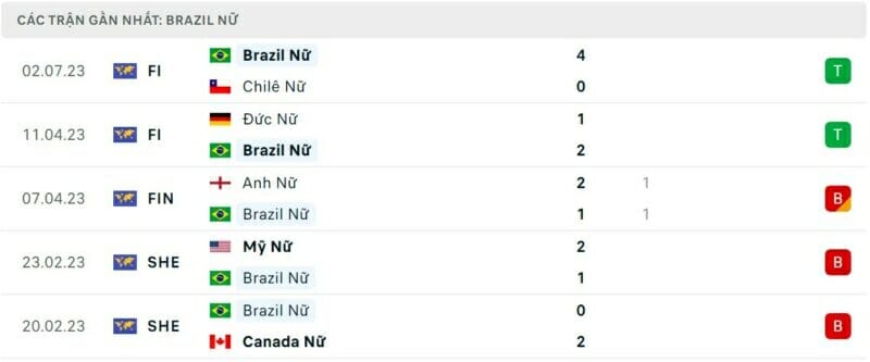 Thành tích đối đầu nữ Brazil vs nữ Panama: