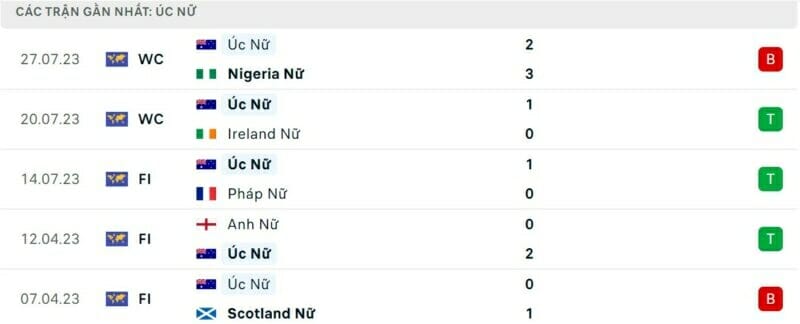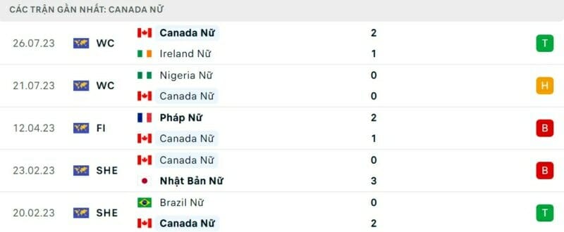 Phong độ gần đây nữ Canada vs nữ Australia