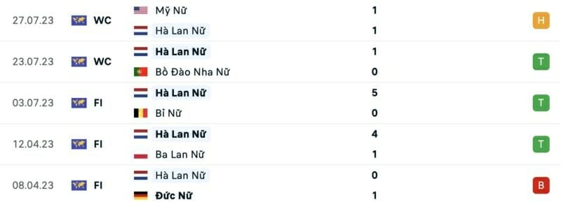 Thành tích đối đầu nữ Việt Nam vs nữ Hà Lan: