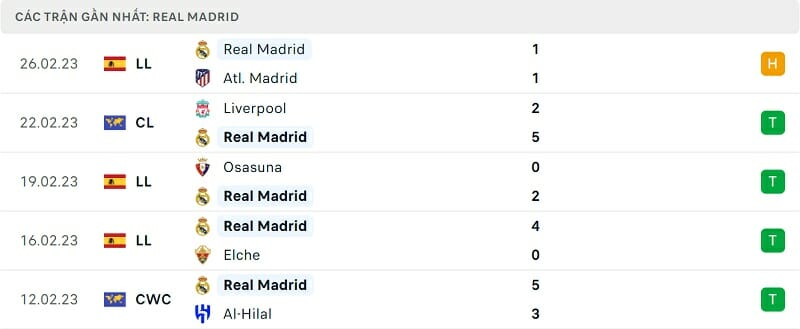 Phong độ Real Madrid vs Barca