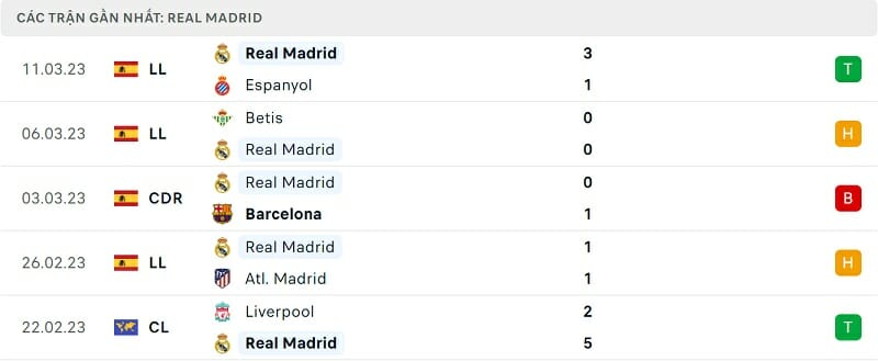Phong độ Real Madrid vs Liverpool