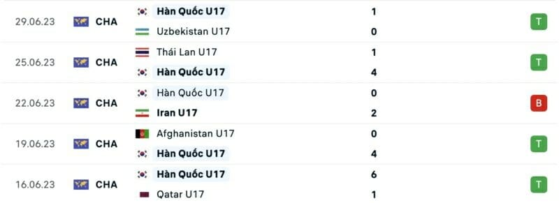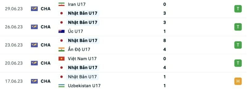 Thành tích đối đầu U17 Nhật Bản vs U17 Hàn Quốc