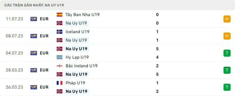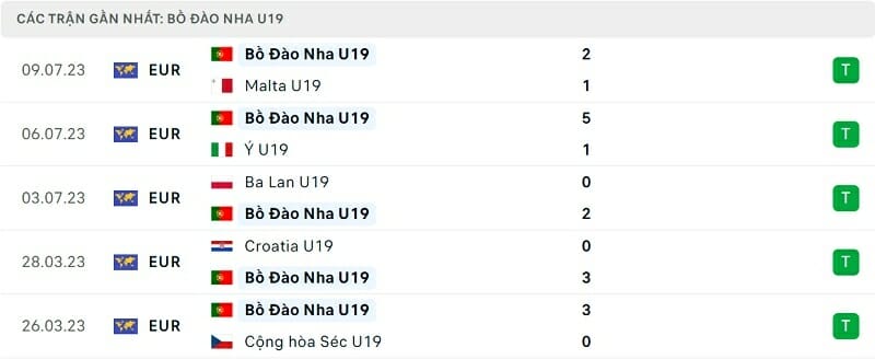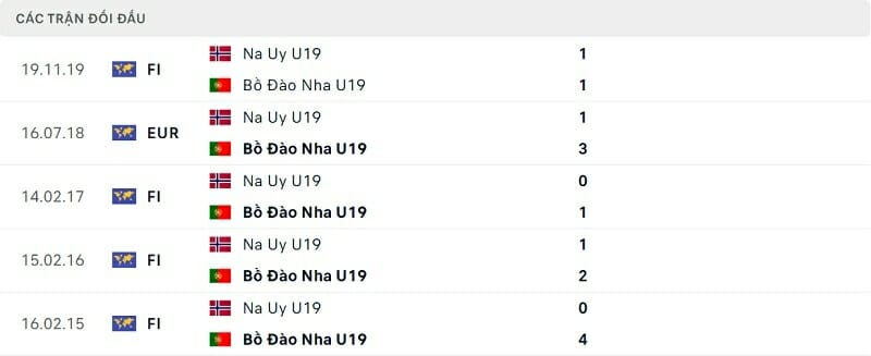 Thành tích đối đầu U19 Bồ Đào Nha vs U19 Na Uy