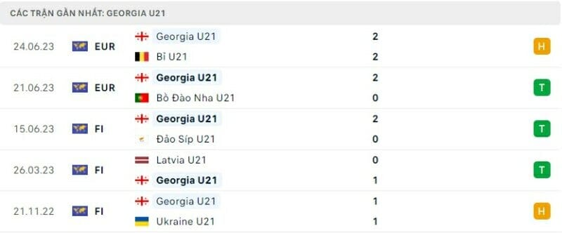 Phong độ U21 Georgia