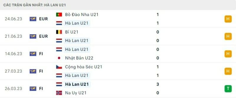 Phong độ U21 Hà Lan