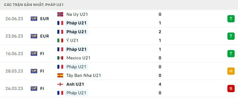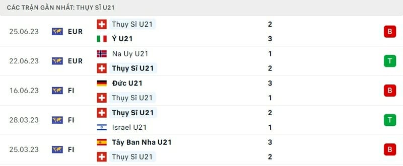Phong độ thi đấu U21 Thụy Sĩ vs U21 Pháp