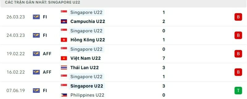 Phong độ gần đây U22 Thái Lan vs U22 Singapore:
