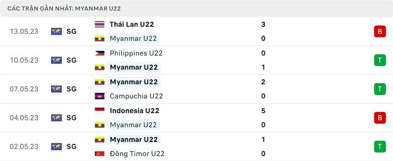 Suốt một thập kỷ qua, U22/23 Việt Nam đã chạm trán các đồng nghiệp Myanmar tổng cộng 6 lần, giành 4 chiến thắng và chịu 2 trận thua.