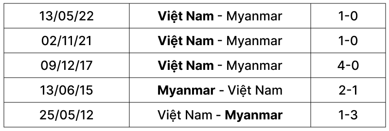 Thành tích đối đầu U22 Việt Nam vs U22 Myanmar