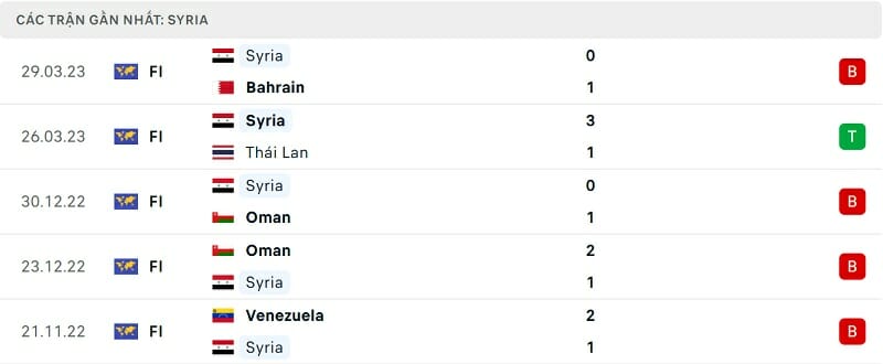 Dẫu vậy, phong độ của Syria lại khá tệ. Đội bóng thuộc Tây Á đã thua 8/9 trận gần nhất ở mọi đấu trường. Ngược lại, Việt Nam chỉ nhận đúng 1 thất bại sau 10 trận kể từ tháng 12/2022.
