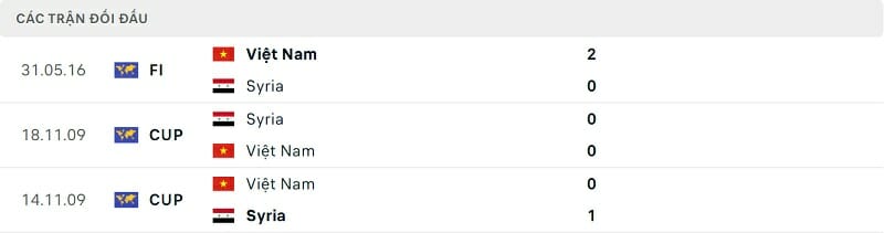 Thành tích đối đầu Việt Nam vs Syria