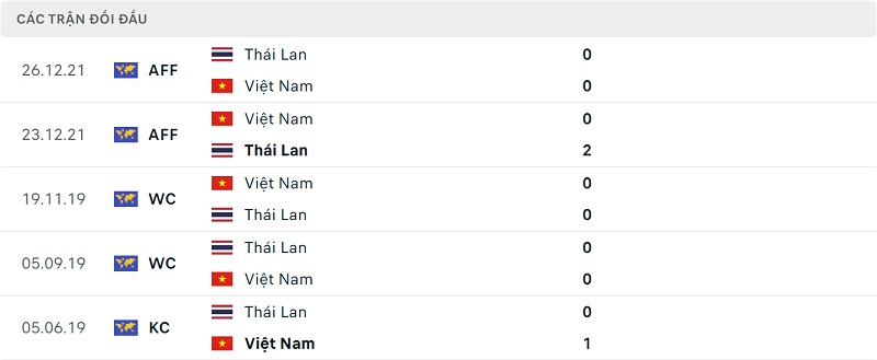Thành tích đối đầu Việt Nam vs Thái Lan