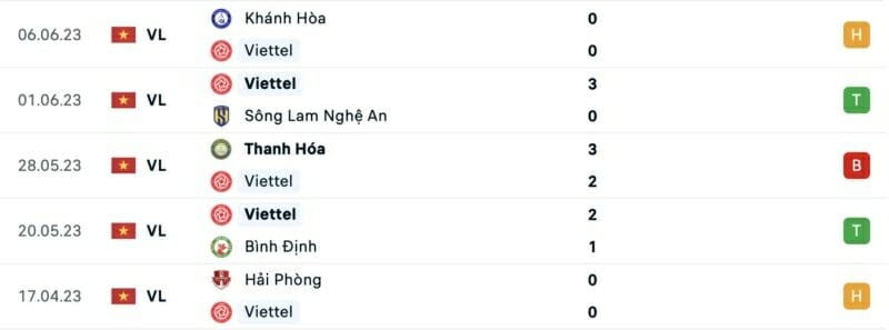 Phong độ Viettel vs Bình Dương