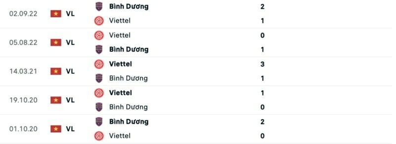 Thành tích đối đầu Viettel vs Bình Dương