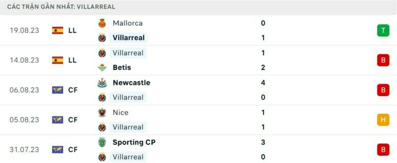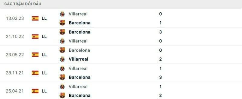 Thành tích đối đầu Villarreal vs Barcelona: