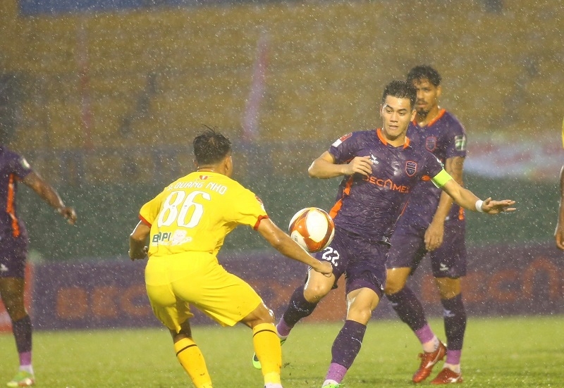 Tuy nhiên đội chủ nhà cũng không phải tiếc nuối quá lâu bởi đến phút đá bù giờ đầu tiên. Từ cú dứt điểm của Tiến Linh, thủ thành Minh Toàn không thể bắt gọn bóng và Rimario đã tận dụng cơ hội để đá bồi.