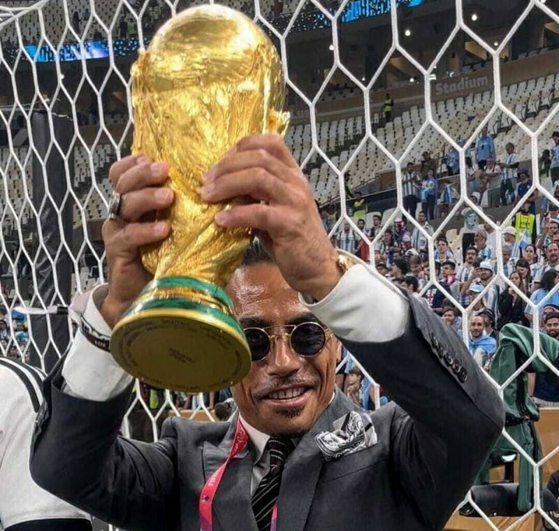 Đáng chú ý, truyền thông khi đó đã liên tục bắt gặp hình ảnh của Salt Bae, một đầu bếp có tiếng người Thổ Nhĩ Kỳ. Người có biệt danh ‘Thánh rắc muối’ này đã tạo dáng khá kỳ cục bên cạnh các cầu thủ để ăn mừng cùng họ. Ông thậm chí còn chộp lấy chiếc cúp World Cup hay cắn huy chương như thể là một cầu thủ.
