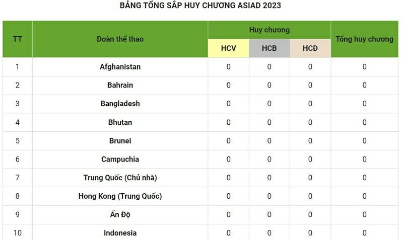 Bảng xếp hạng huy chương đại hội thể thao Châu Á - ASIAD 2023