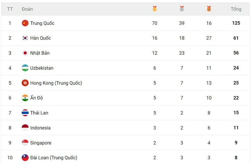 Bảng xếp hạng huy chương đại hội thể thao Châu Á - ASIAD 2023