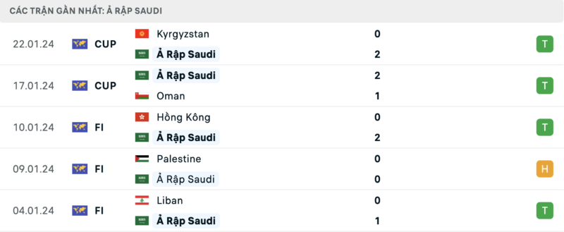 Phong độ Ả Rập Xê Út vs Thái Lan