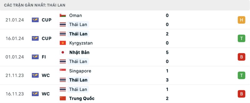 Ở phía bên kia chiến tuyến, Thái Lan cũng đang trình diễn bộ mặt hết sức tích cực. Bất chấp sự chuẩn bị không tốt trước thềm Asian Cup 2023, đại diện Đông Nam Á đã có được những kết quả thuận lợi ở 2 lượt trận đầu tiên. Họ thắng Kyrgyzstan 2-0 và xuất sắc cầm hòa Oman 0-0 để có được 4 điểm và tạm xếp thứ hai. Điểm nhấn trong những màn trình diễn của Thái Lan là hàng phòng ngự chắc chắn với 2 trận giữ sạch lưới liên tiếp.