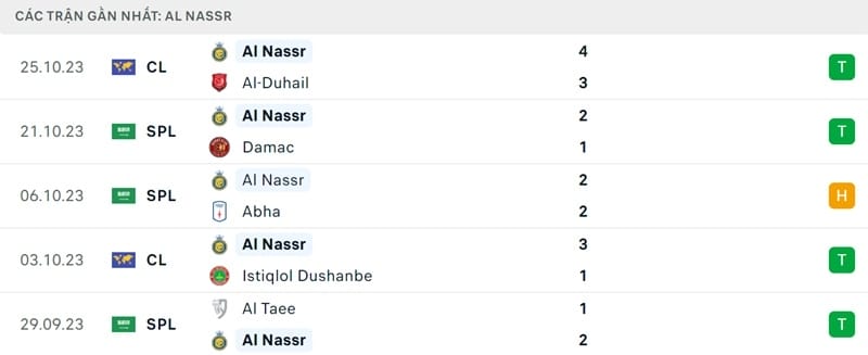 Al Nassr đang có phong độ không thể ngăn cản. Đội bóng này đang có 13 trận bất bại trên mọi đấu trường. Không chỉ chiến thắng, Al Nassr còn có nhiều trận thắng với tỷ số cách biệt. Bằng chứng là Al Nassr đang là hàng công hiệu quả nhất giải VĐQG Ả Rập với 28 bàn thắng sau 10 trận.