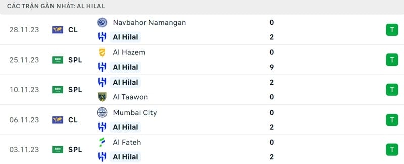 Al Hilal duy trì phong độ đáng sợ bằng việc trải qua 20 trận bất bại, trong đó có 12 trận thắng liên tiếp. Đội duy nhất đánh bại được Al Hilal tính đến lúc này thú vị là Al Nassr trong trận chung kết cúp vô địch các CLB Ả Rập. Mất ngôi sao số 1 là Neymar vì chấn thương, nhưng Aleksandar Mitrovic đang nổi lên như ngôi sao gánh vác hàng công Al Hilal. Anh đã có 18 bàn và 4 kiến tạo sau 19 trận cho Al Hilal.