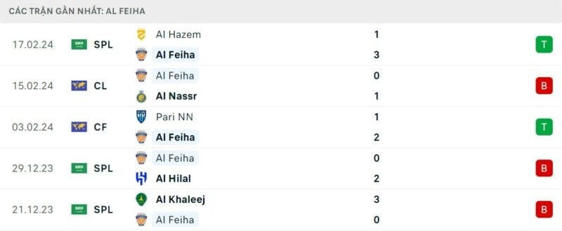 Trái ngược với đối thủ, Al Fayha lại có phong độ khá tệ. Họ chỉ thắng được 1 và thua tới 5 trong số 6 trận đấu chính thức gần nhất. Thắng lợi duy nhất chính là chiến thắng 3-1 trước Al Hazm hồi cuối tuần. 3 điểm quan trọng không chỉ ngắt mạch trận toàn thua, mà còn giúp đoàn quân của HLV Vuk Rašović lên tinh thần trước khi trở lại đấu trường AFC Champions League.