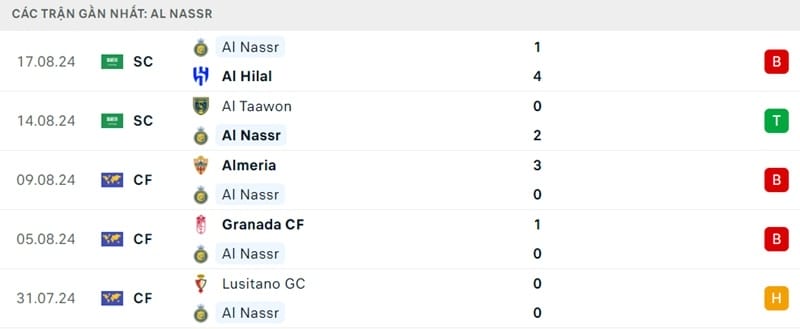 Phong độ gần đây Al Nassr vs Al Raed