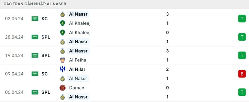 Phong độ thi đấu Al Nassr vs Al Wehda