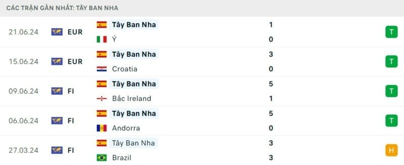 Phong độ Albania vs Tây Ban Nha