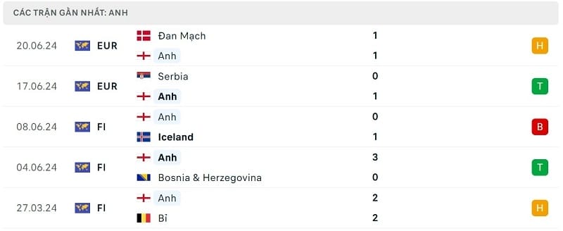 Phong độ gần đây Anh vs Slovenia