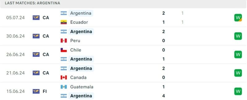 Phong độ gần đây Argentina vs Canada