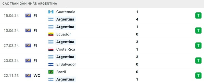 Thầy trò Lionel Scaloni đánh bại Pháp trên chấm phạt đền trong một trận chung kết gay cấn để giành chiếc cúp thế giới lần đầu tiên kể từ năm 1986. Từ cuộc hành trình vinh quang ấy đến nay, Argentina thể hiện phong độ cực cao. Họ thắng 13 trận và chỉ thua 1 trong 14 lần ra sân gần nhất. Đó là cú hích tinh thần đáng kể cho Argentina khi họ chuẩn bị bước vào Copa America 2024.