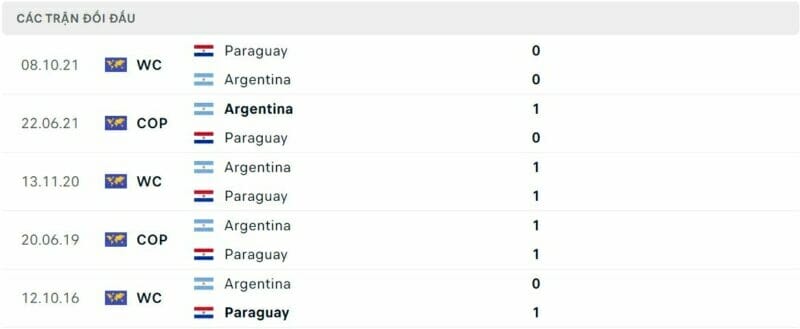 Thành tích đối đầu Argentina vs Paraguay