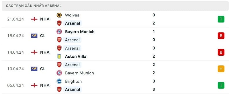 Phong độ Arsenal vs Chelsea