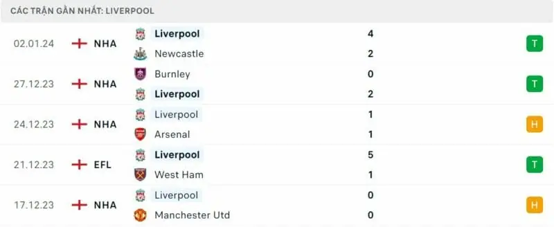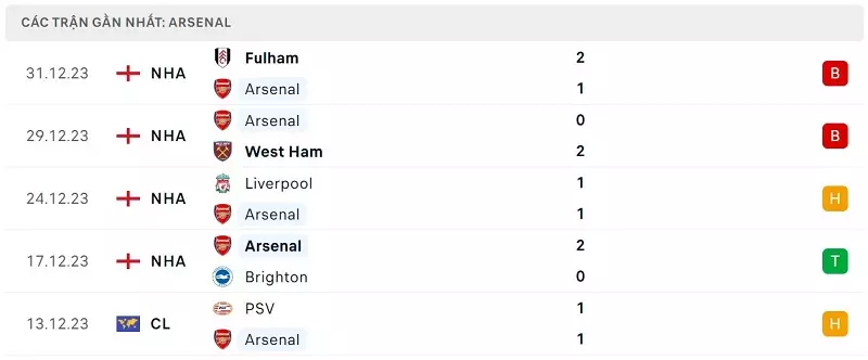 Phong độ Arsenal vs Liverpool